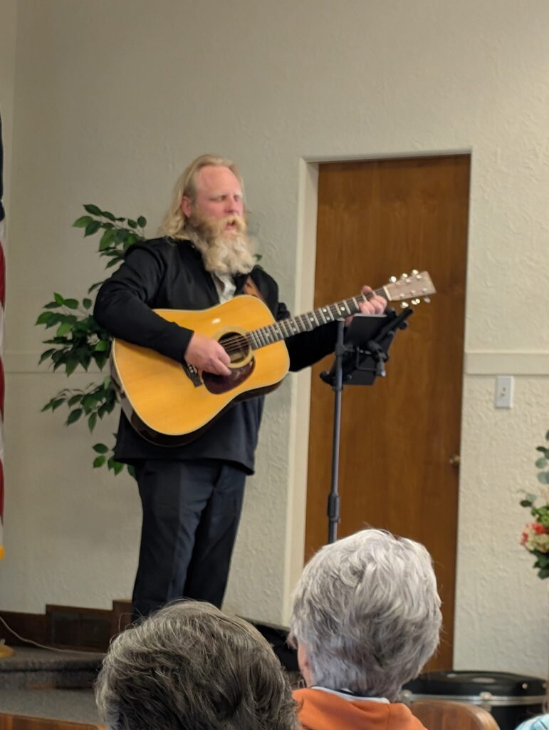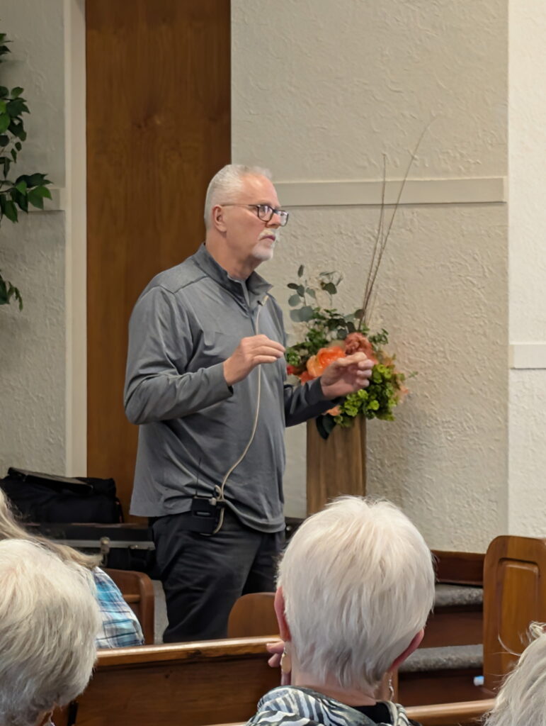After a brief business meeting which included the treasurer’s report, Immigrant House Museum report, and a brief discussion regarding scholarships, Sam Shiltz entertained the gathering with some songs, and Glen Ediger shared his presentation about Threshing Stones, including pictures of 100 of these stones found in Kansas. Over 80 people were in attendance. The meeting ended with a fellowship time (including poppyseed rolls).